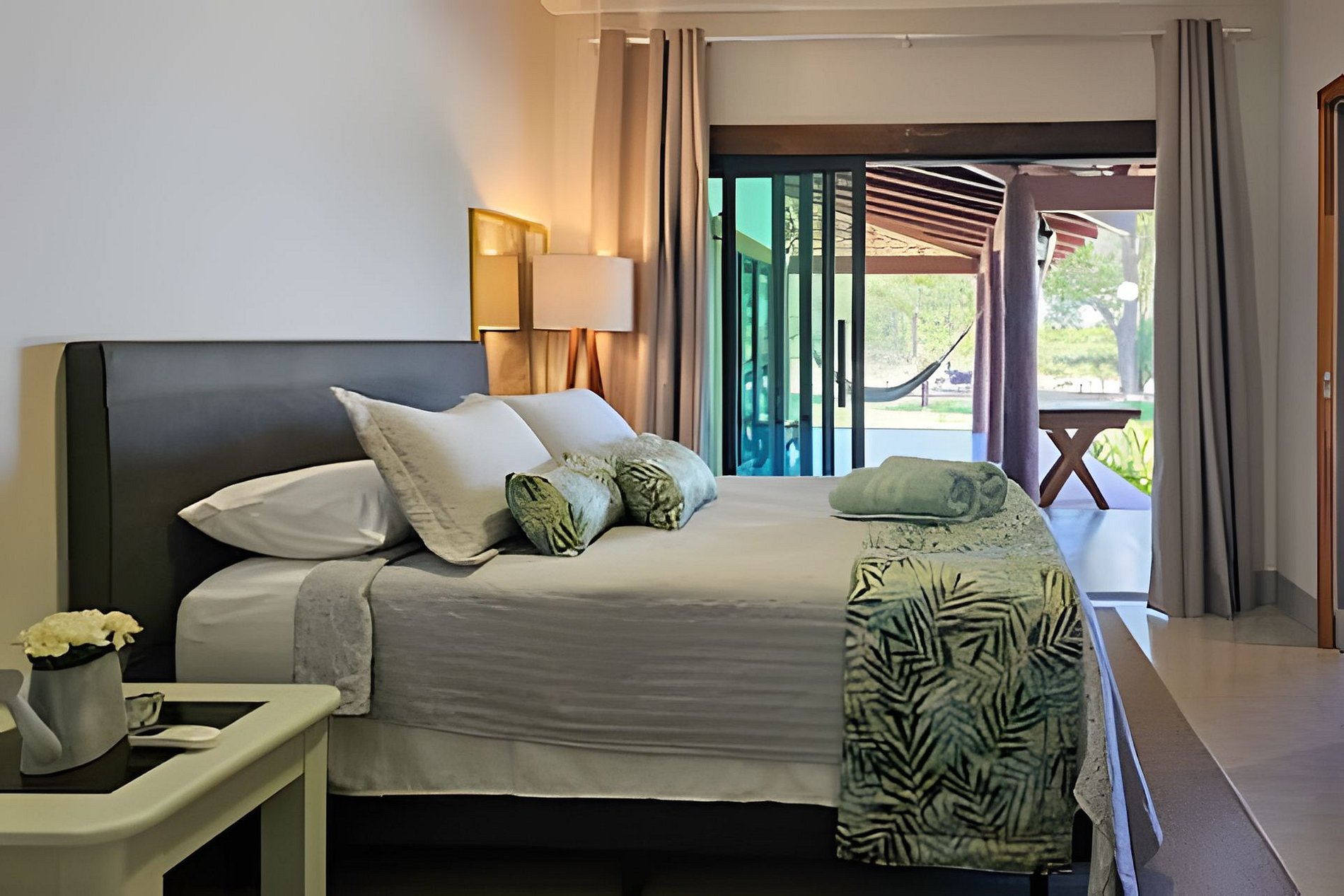 Todos os cômodos tem saída independente para uma deliciosa varanda, com vista para a piscina e para o lindo jardim.