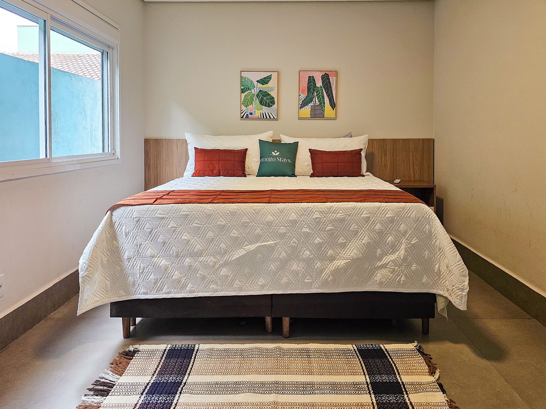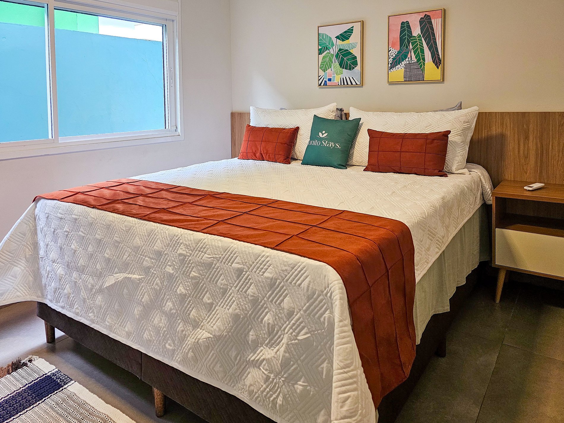 São 2 suítes espaçosas com ar condicionado, sala de estar e TV, cozinha completa com churrasqueira privativa e estacionamento para 2 carros dentro do condomínio.