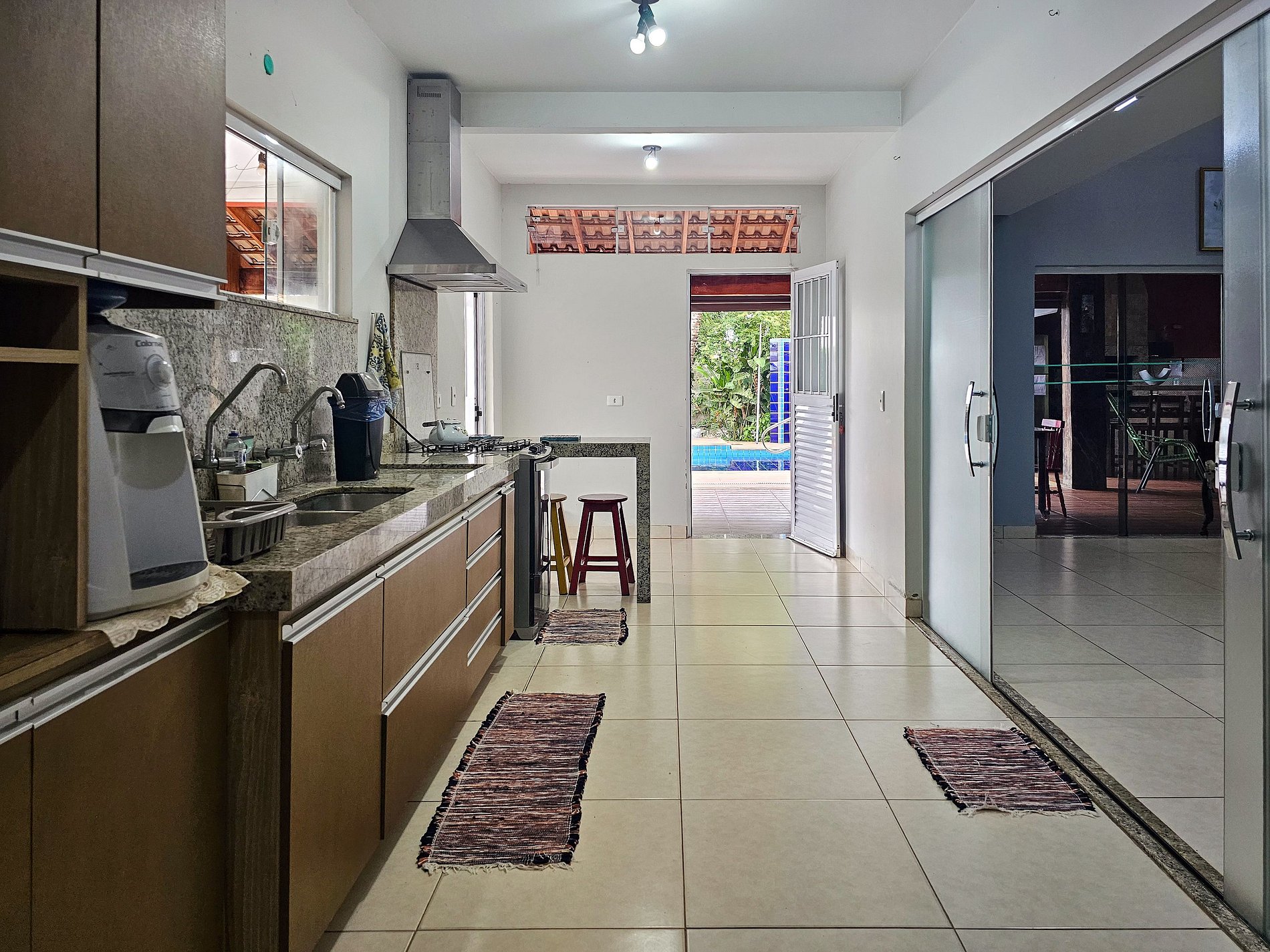 A casa está localizada na cidade, em rua asfaltada e um bairro muito tranquilo. Estamos a 2 km da praça central e próximo à casa contamos com um ótimo comércio, temos um ótimo mercado a 200 metros e farmácia a 500 metros.