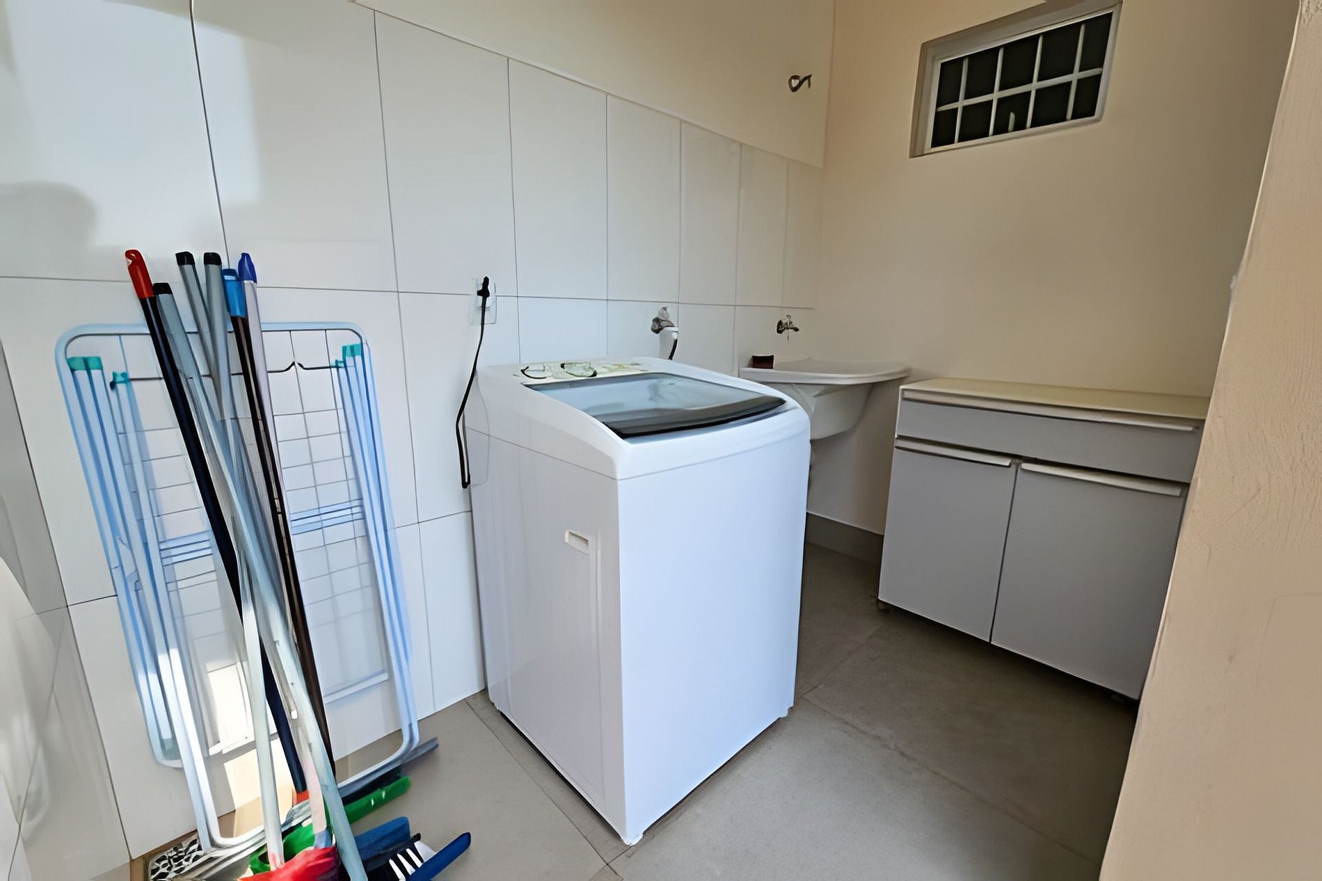 Possui nesta área lavabo e uma lavanderia completa.