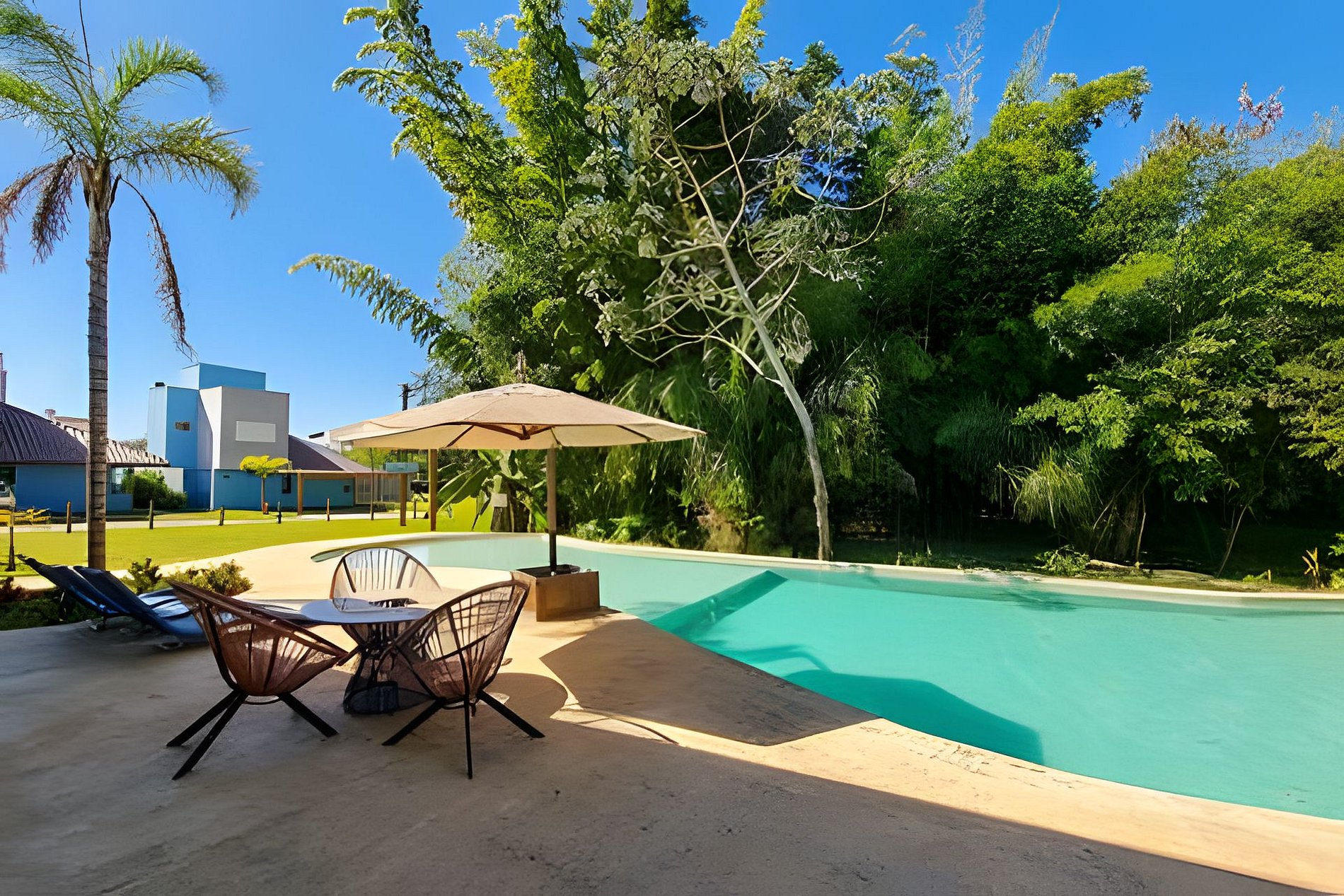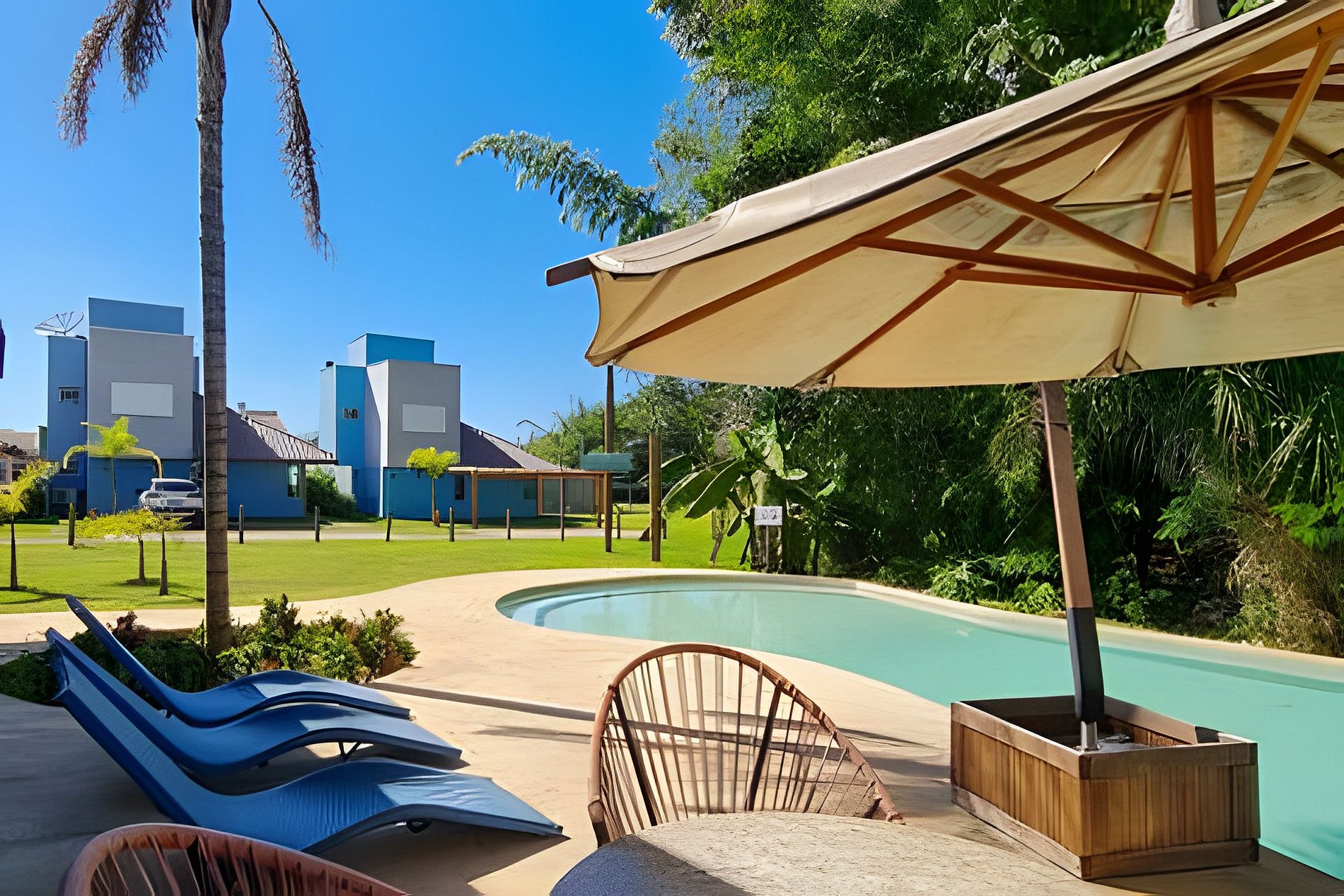 Está dentro de um condomínio muito seguro e tranquilo, com uma área de lazer compartilhada deliciosa com uma grande piscina logo na frente a casa e muito espaço verde.