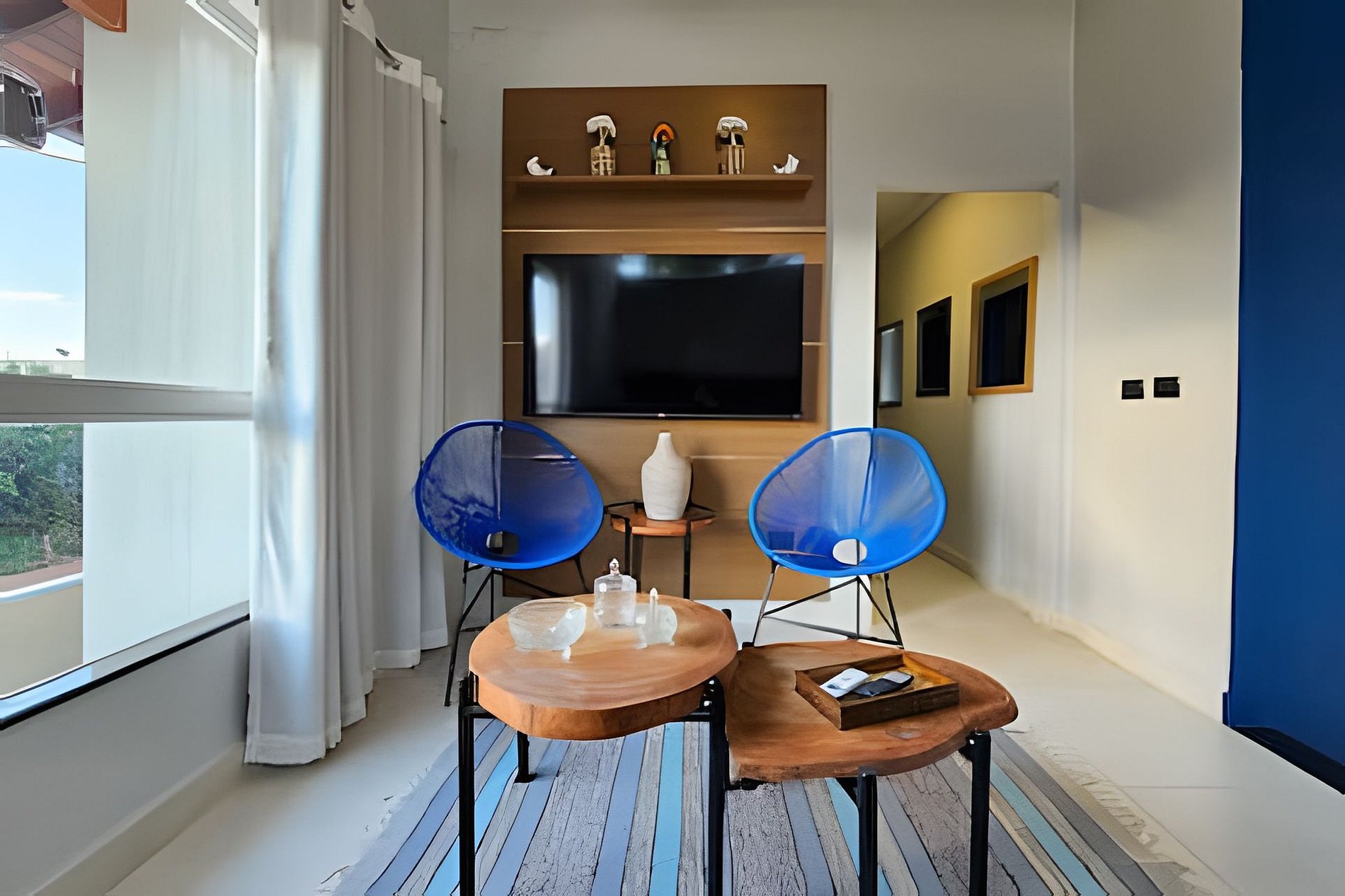 Área de estar com sofá/cadeira